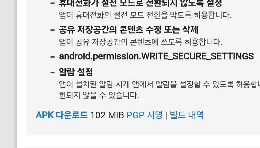 Android10 문제로 인해 플레이스토어에선 최신버전을 받을 수 없습니다. 최신버전을 설치하지 않으면 나중에 Andronix 우분투 설치과정에서 문제가 생길 수도 있습니다. F-Droid에서 최신버전을 찾으신 후 왼쪽 아래의 APK다운로드를 누르면 됩니다. 만약 설치 중에 출처를 알 수 없다는 경고가 뜨면 더보기에서 무시하고 설치를 누르면 됩니다.