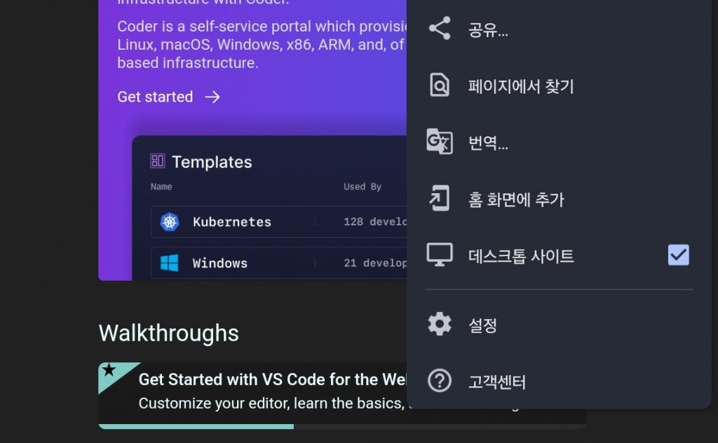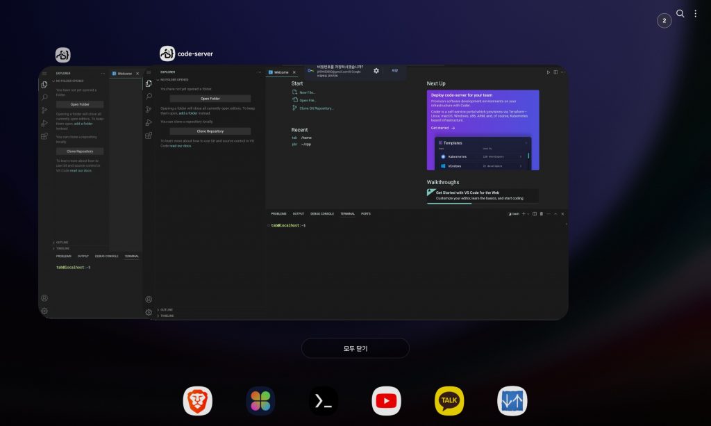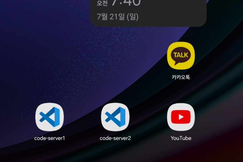 저는 크롬, 삼성 인터넷 이렇게 두가지 브라우저에서 앱을 설치해서 code-server를 복제했습니다.