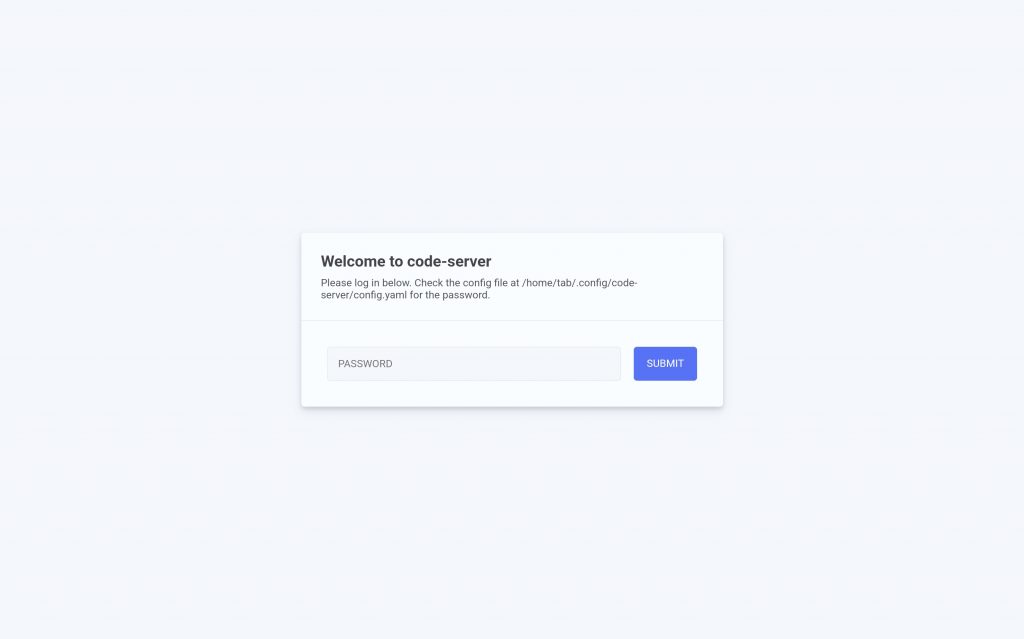 이제 code-server를 본격적으로 실행할겁니다. 다시 아래 명령어로 code-server를 실행하고 브라우저에서 아까 바꿔놓은 비밀번호를 입력합니다.