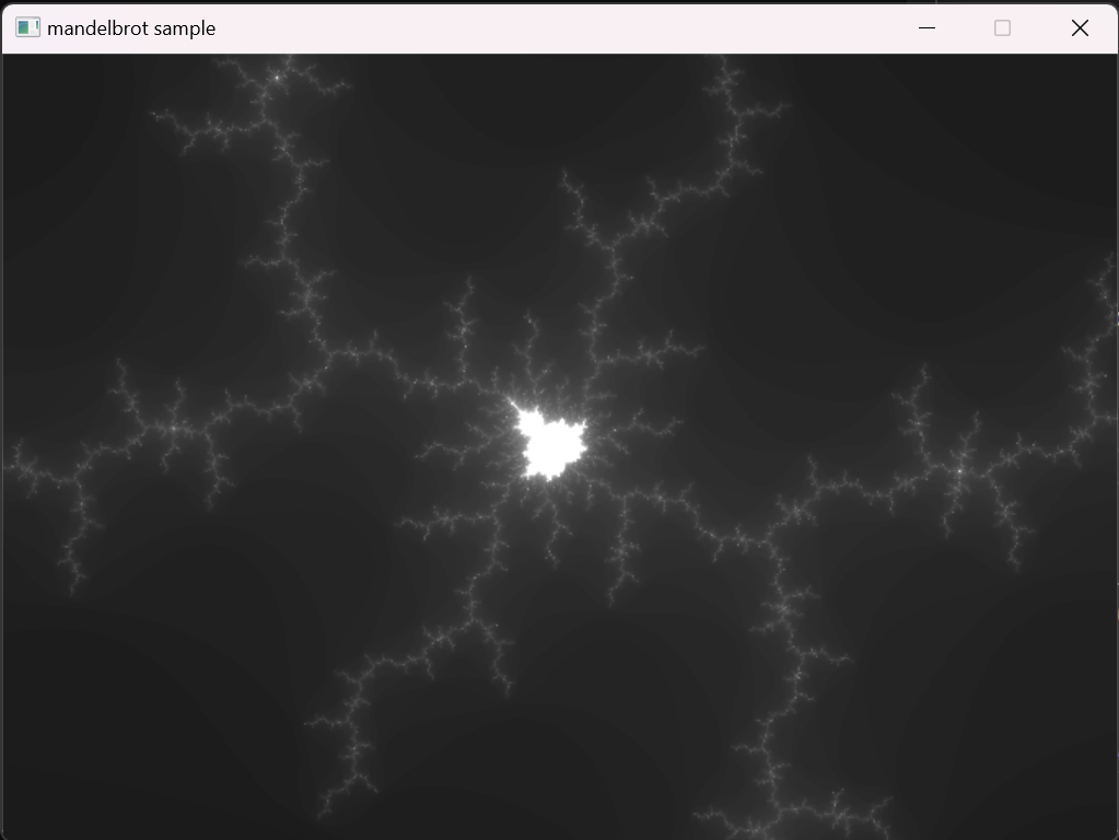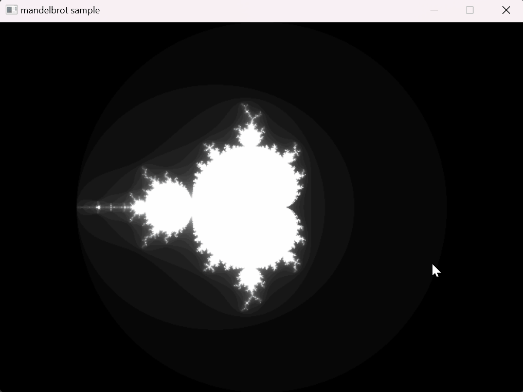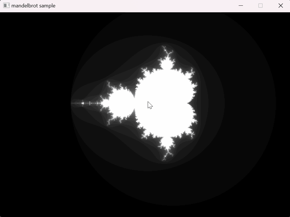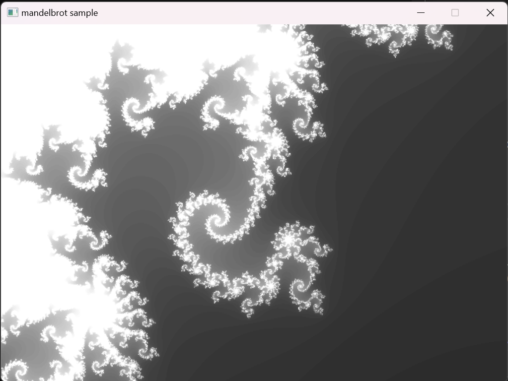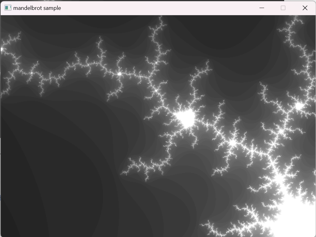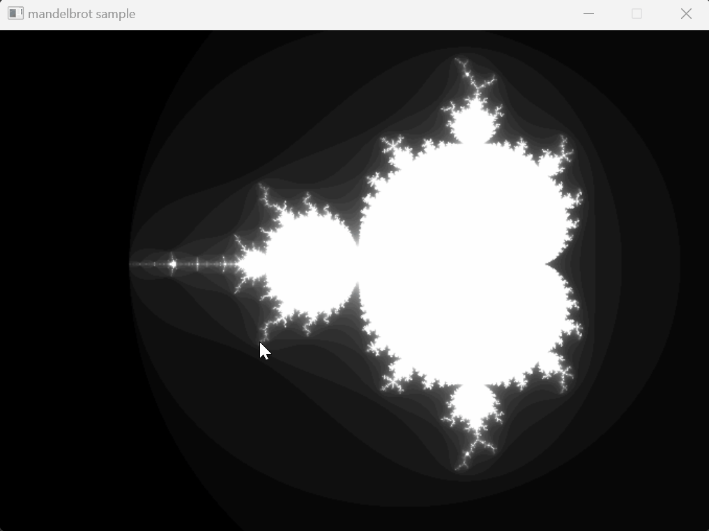 이제 마우스로 망델브로 집합을 움직일 수 있게 되었습니다. 그리고 확대/축소도 가능한데… 흠… 근데 뭔가 부족해 보입니다. 지금은 화면 중심을 기준으로 하지만, 마우스 커서를 올려놓은 부분을 기준으로 확대/축소할 수 있으면 좋을텐데 말입니다.
