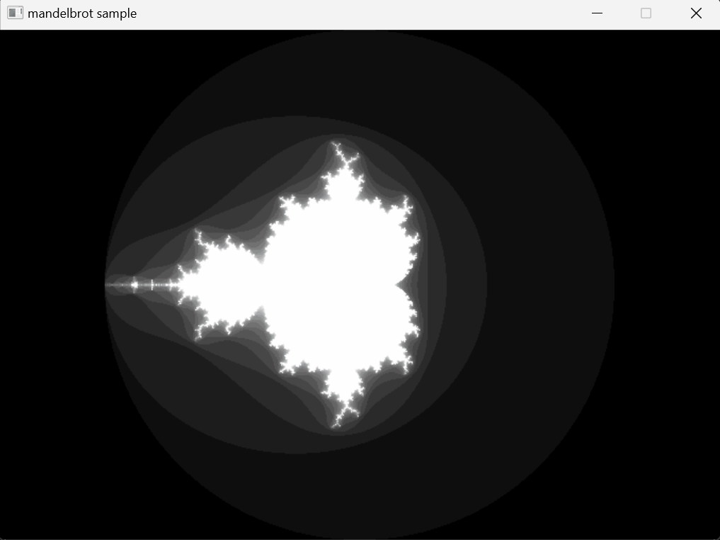 이제 프로그램을 release로 빌드하고 실행해 봅니다. 움직이는 이미지라 계산량이 상당하기 때문에 debug로 빌드한다면 프레임이 매우 끊기기 때문입니다. 실행해보면 WASD키나 방향키로 시점을 자유롭게 움직일 수 있습니다. 그리고 키보드의 <, >키로 iteration 값을 조정할 수 있습니다.